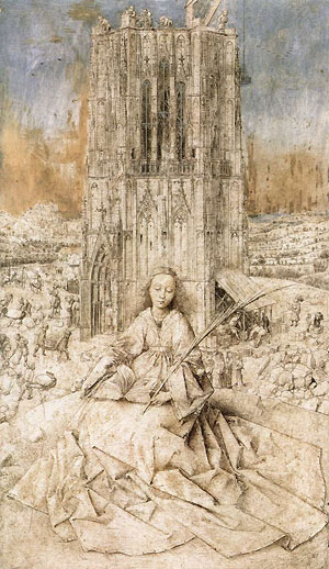 • Jan van Eyck: Heilige Barbara, 1437. Musée Royal des Beaux-Arts, Antwerpen (Koninklijk Museum voor Schone Kunsten, Antwerpen)