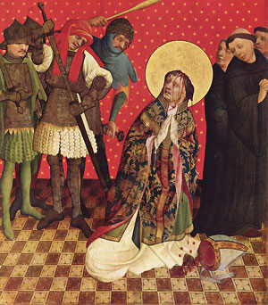 Zu den bedeutendsten Darstellungen des Martyriums von Thomas von Canterbury zählt der Thomas-Altar (um 1424, Hamburger Kunsthalle) von Meister Francke (um 1383 - um 1436).