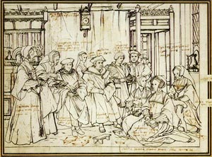 Es gibt eine eindrückliche Federskizze von Hans Holbein dem Jüngeren, die den Haustand von Thomas Morus zeigt und ihn selbst im Kreise der großen Familie. Ein wahrer pater familias.