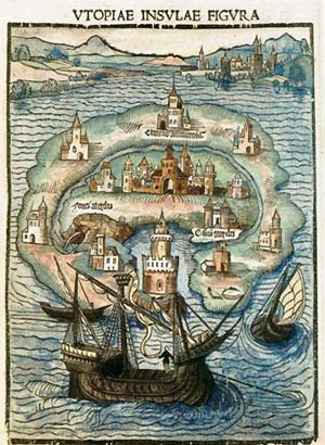 Die Utopia ist heute wohl das bekannteste Werk von Thomas Morus (Löwen 1516, Basel 1518).