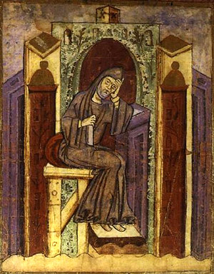Schon oft hatte Notker darüber nachgedacht, wie diesem Übelstande abzuhelfen sei. Da erschien in St. Gallen ein Mönch aus dem nordfranzösischen Kloster Jumièges (Gimedia), das von den Normannen niedergebrannt war. In den Chorbüchern, welche der Flüchtling mit sich führte, sah Notker, wie einzelnen solchen Notenreihen Texte sillabisch unterlegt waren. Dies gab ihm Anregung, ähnliches zu versuchen. Er schob in gleicher Weise den textlosen Melismen von ihm verfaßte Worte unter, so daß jeder Note je eine Silbe des Textes zufiel und jeder Melodiephrase nicht ein, sondern zwei Textsätze (clausulae) entsprachen, die, wenn wir von späterer Übung auf frühere Gewohnheit schließen dürfen, abwechselnd vom Knaben- und vom Männerchore vorgetragen wurden.
