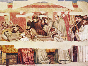 Thomas von Celano war einer der ersten zwölf Gefährten des hl. Franziskus. Sein Geburtsjahr, das ungewiß ist, haben wir jedenfalls im ausgehenden zwölften Jahrhundert zu suchen. Seine Heimat war Celano, ein süditalienisches Städtchen, in der Nähe des Fuciner Sees im Lande der Marser gelegen. Schon vo dem Jahre 1209 schoß er sich dem Ordensstifter von Assisi an, kam 1221 mit Caesarius von Speier nach Deutschland, wurde 1223 Kustos der Klöster zu Worms, Speier, Mainz und Köln und, als Caesarius über die Alpen zurückkehrte, dessen Stellvertreter. Wann Thomas Deutschland verlassen, ist ungewiß, gewiß nur, daß er schon 1225 wieder in Assisi war. Über Auftrag des Papstes Gregor IX. schrieb er 1229 seine Vita prima sancti Francisci. 1244 begann er, aufgefordert vom Ordenskapitel zu Genua, nach den Aufzeichnungen anderer Augenzeugen seine zweite Legende, der später auf Befehl Alexanders IV. die dritte, die der hl. Clara von Assisi, folgte. Wie das Jahr seiner Geburt ist das seines Todes ungewiß.